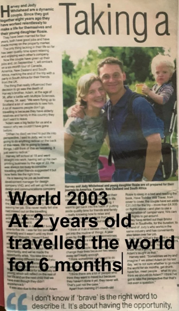 2003 TRAVELLED THE WORLD FOR 6 MONTHS BACKPACKING (AGED 2!)